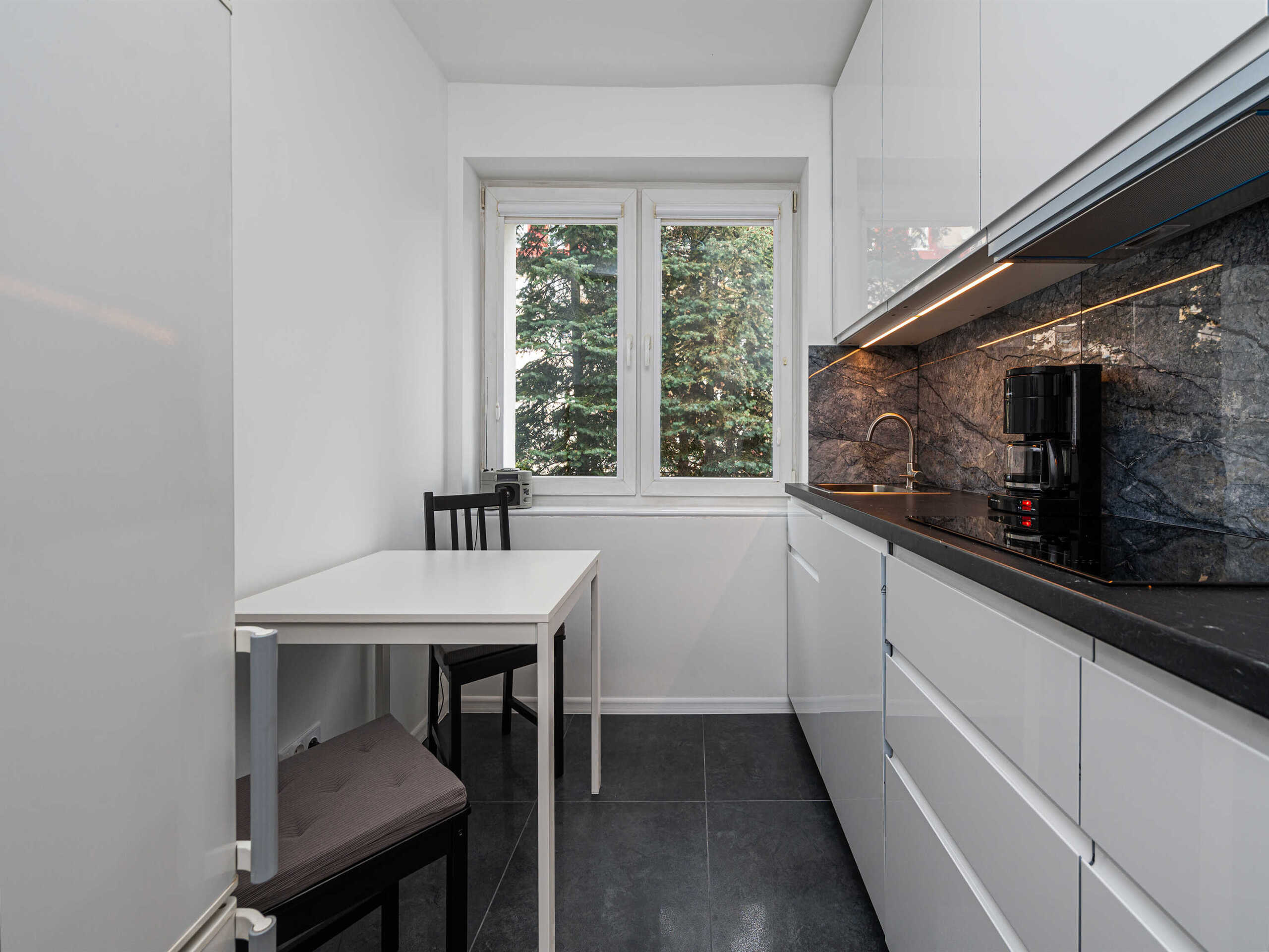 - oddzielnej kuchni, w pełni wyposażonej w nowoczesne sprzęty (lodówka, zmywarka, piekarnik, kuchenka, ekspres do kawy), co umożliwia przygotowanie posiłków w domowym zaciszu,